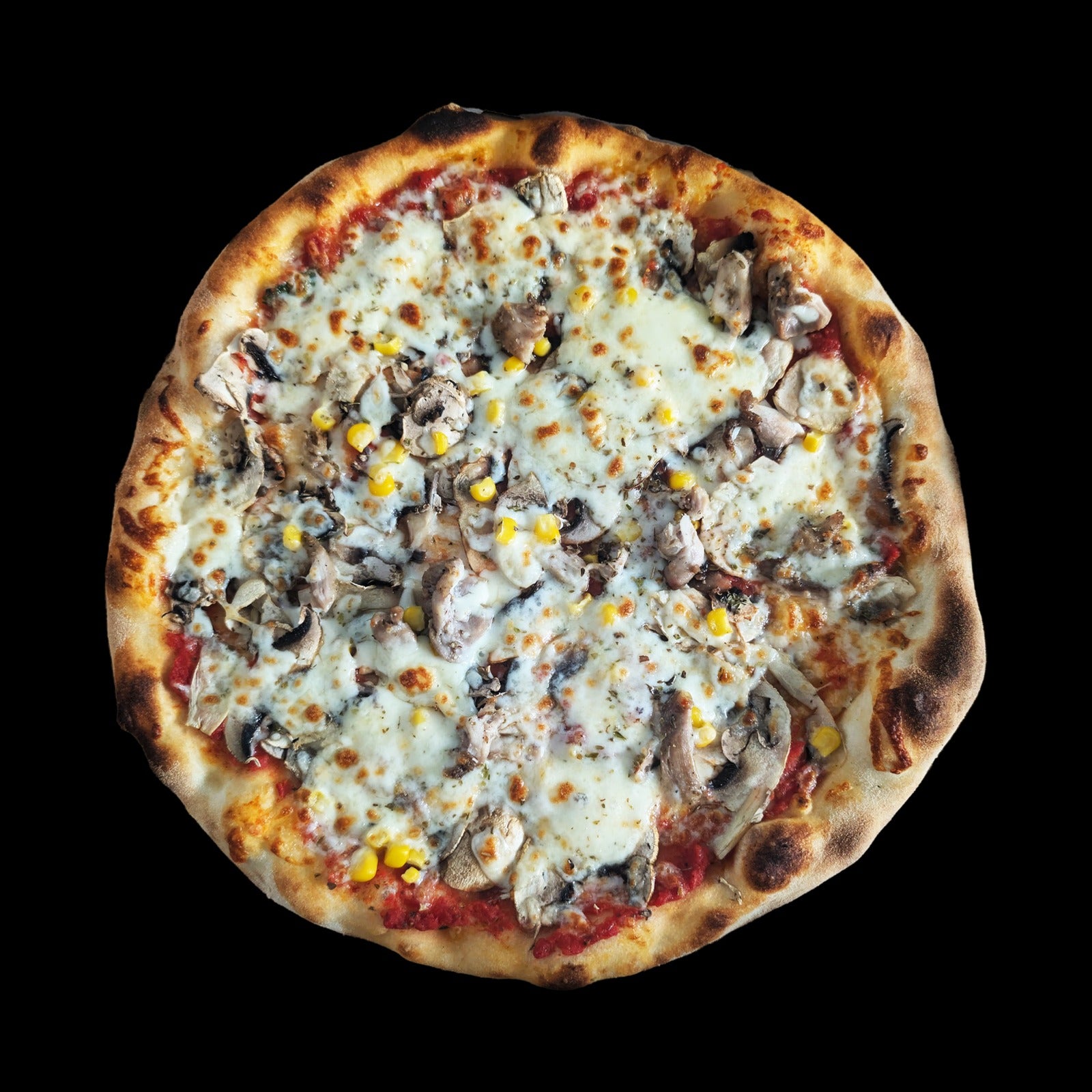 Ingrediente: sos de roșii, mozzarella, carne de pui, porumb, ciuperci, ulei de măsline