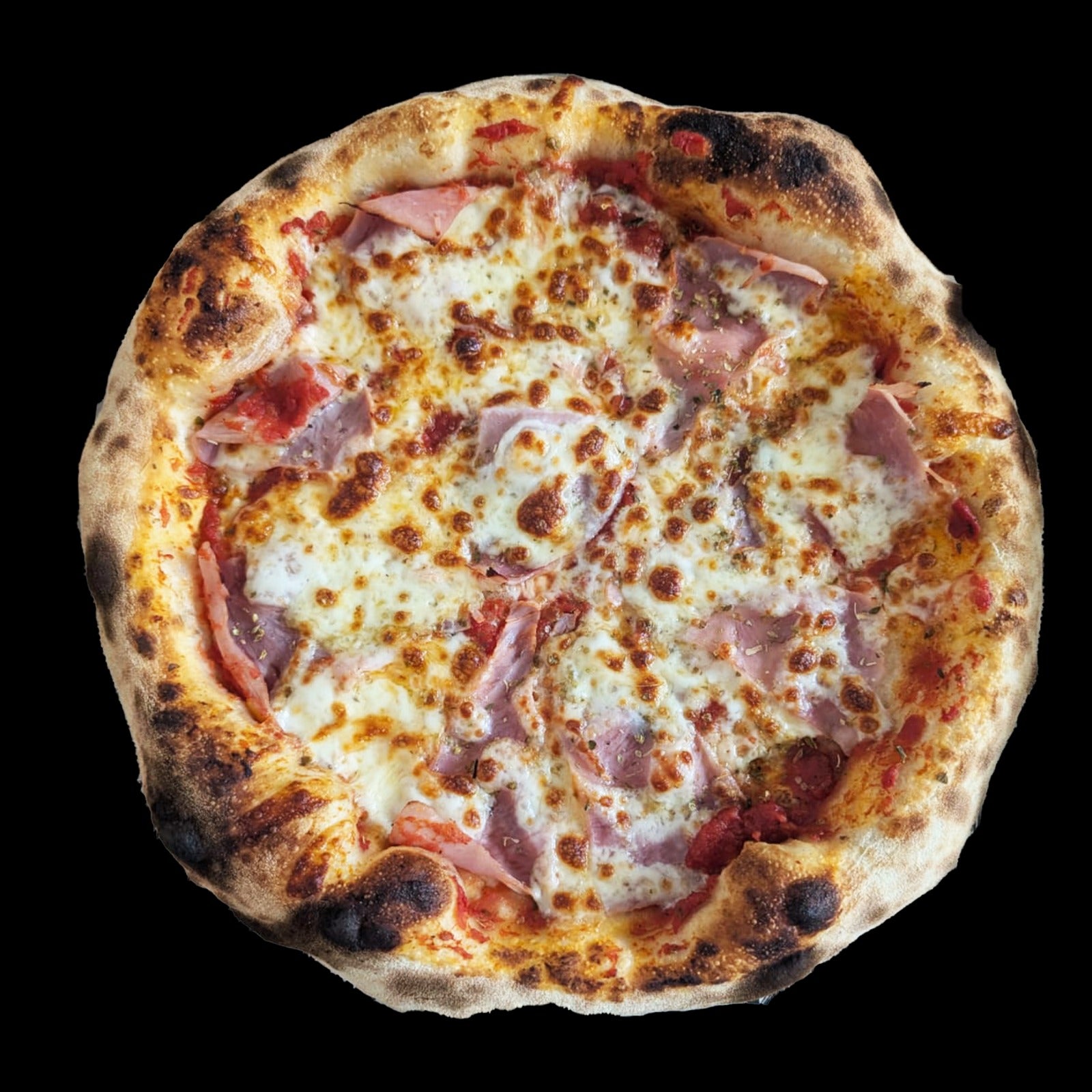 Ingrediente: sos de roșii, mozzarella, prosciutto cotto, ulei de măsline
