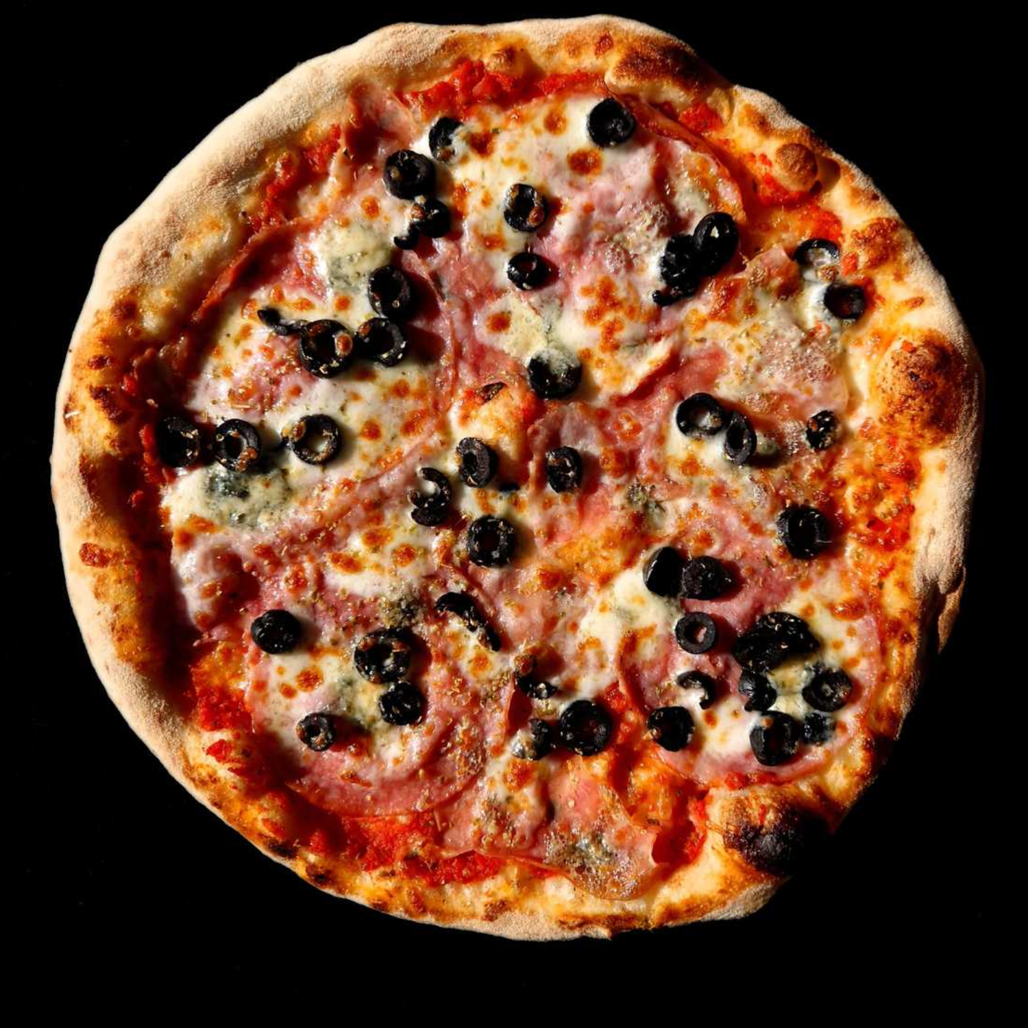 Ingrediente: sos pesto, mozzarella, pastramă de curcan, măsline, parmezan, ulei de măsline